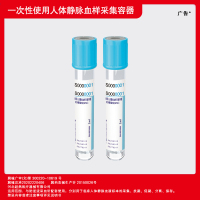 用途: 用于医学检验中生化学,免疫学检查的血液标本的采集,它具有操作温度范围广,内壁经特殊处理,极度光滑,高品质的促凝剂均匀分散在采血管内壁上,血液标本进入管内后与其充分接触,在5-8分钟内使血液完全凝固,并通过离心获得高质量的血清,解决了血细胞的凝固破裂,溶血及纤维蛋白析出问题,满足快速门诊,急诊血清生化试验,血块完全收缩时间为20-25分钟,离心转速为3500-4000转/分,离心时间5-10分钟,建议储存温度4°C-25°C。